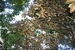 Las hojas jóvenes son blancas en la parte inferior, pero las hojas maduras son marrones. Hojas generalmente son simples en los árboles maduros. Láminas foliares unos 2-23 x 2-9 cm. Pecíolos aproximadamente 1.5-5 cm de largo, ranuradas en la superficie superior. Flores sésiles , de dos en dos, sin un pedúnculo común. Las frutas de 10-12 x 2,5-3 cm. Semillas de 8-9 x 2-2,5 cm.[1]
