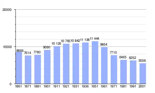 | Gráfica de evolución demográfica de Oppido Mamertina entre 1861 y 2001 |