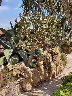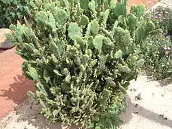 Es un arbusto de 2-4 (6) m de altura, tronco de 2 m de diámetro, copa profusamente expandida en ramas. Artejos ovados-oblongos, 1-3 dm de largo, verde brillantes, raramente variegados. Hojas subuladas; espinas solas o en pares de 1-4 (6) cm de largo, desde blancas, parduzcas a pardo rojizas.
