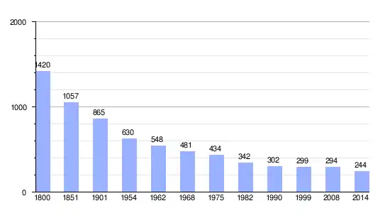 | Gráfica de evolución demográfica de Oradour entre 1800 y 2014 |