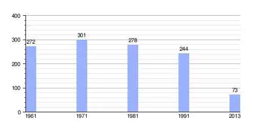 | Gráfica de evolución demográfica de Orahovo entre 1961 y 2013 |