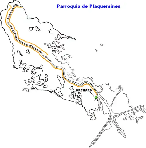 Orchard es una pequeña localidad ubicada sobre el delta del Misisipi, dentro de la parroquia de Plaquemines, en el estado de Luisiana, Estados Unidos.