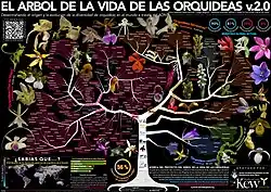 La monofilia de las orquídeas está sustentada tanto por la morfología como por los análisis de secuencias de ADN (Dressler 1981,[45] 1993,[46] Dressler y Chase 1995,[47] Burns-Balogh y Funk 1986,[48] Judd et al. 1993,[49] Chase et al. 2000,[50] Fay et al. 2000,[51] Freudenstein et al. 2004[52]). Asimismo, las relaciones filogenéticas dentro de la familia, motivo de activas investigaciones en las últimas décadas que todavía continúan, han sido dilucidadas mediante análisis cladísticos de la morfología y de secuencias conservadas del ADN (Dressler 1983,[53] 1993,[46] Chase 1986,[54] 1988,[55] Chase y Hills 1992,[56] Chase y Palmer 1992,[57] Cameron et al. 1999,[58] Kores et al. 2000,[59] Whitten et al. 2000,[60] Salazar et al. 2003,[61] Burns-Balogh y Funk 1986,[48] Cameron 2006,[62] Dressler 1986,[63] 1993,[46] Judd et al. 1993,[49] Dressler y Chase 1995,[47] Cameron et al. 1999,[58] Freudenstein y Rasmussen 1999,[64] Cameron y Chase 2000,[65] Freudenstein et al. 2000,[66] 2004,[52] Molvray et al. 2000,[67] van den Berg et al. 2005[68]).
