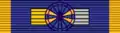 - La cinta de la orden es de muaré azul con una pequeña franja anaranjada en cada borde.[2]