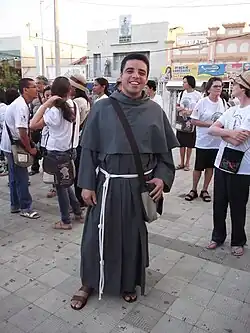 Un joven franciscano conventual con el hábito tradicional de la orden.