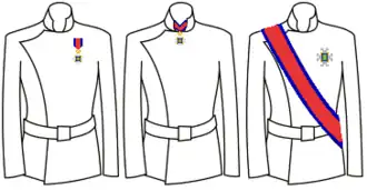 La orden era llevada de la siguiente forma por los tres primeros grados originales:[6][7]