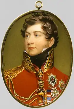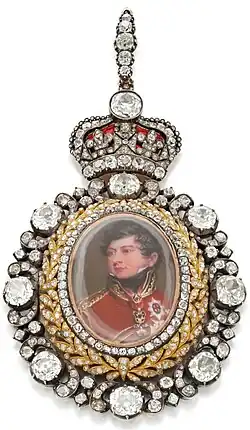 Tras el final de las Guerras napoleónicas y siendo príncipe regente, Jorge había entregado dos retratos en miniatura guarnecidos de diamantes a los generales Platov (ruso) y Blücher (prusiano), que se prendían al pecho prendidos de una cinta de seda azul. Parece ser que el Príncipe Regente siguió en esto la tradición de Alejandro I de Rusia que otorgaba a algunos generales su miniatura montada en diamantes para que la llevaran del pecho prendida de un lazo azul.[2]