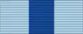 La medalla está conectada con un ojal y un anillo a un bloque pentagonal cubierto con una cinta muaré de seda azul con una franja azul más oscura longitudinal en el medio.[4]