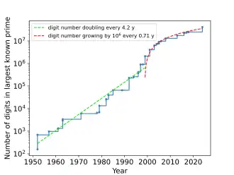 - ↑ a b Chris Caldwell, The Top Twenty: Largest Known Primes at The Prime Pages.