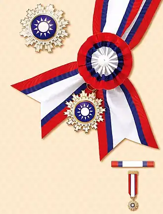- ↑ «ODM of Taiwan: Order of Blue Sky and White Sun with Grand Cordon». www.medals.org.uk (en inglés). Consultado el 15 de marzo de 2022.