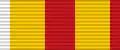 La medalla está conectada con un ojal y un anillo a un bloque pentagonal cubierto con una cinta muaré de seda dorada con una franja longitudinal de color burdeos en el medio. En los bordes de la cinta, hay una tira longitudinal: en el lado izquierdo, blanco, en el derecho, burdeos.[4]