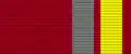 La orden está conectada con un ojal y un anillo a un bloque pentagonal cubierto con una cinta de muaré de seda roja con dos franjas longitudinales en uno de los extremos. El ancho de la cinta es de 24 mm, el ancho de la franja gris es de 4 mm, el ancho de la franja amarilla es de 4 mm y la distancia entre las franjas es de 1 mm. La franja amarilla está a 2 mm del borde derecho de la cinta.[1]
