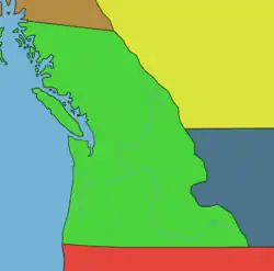 Hasta 1846, el enorme Territorio de Oregón, que se extendía desde la California entonces mexicana hasta la Alaska rusa, se encontraba bajo un régimen especial por el que Estados Unidos y Reino Unido ejercían un dominio común sobre estas tierras. Por el Tratado de Oregón, se fijó la frontera en los 49.º N: la zona desde esa latitud hasta los 54°40′ N quedó para los británicos y la zona hasta los 42.º, para los estadounidenses. Tales límites se basaban en gran medida en las convenciones de Nutca, que había fijado la frontera entre los territorios ingleses y españoles.