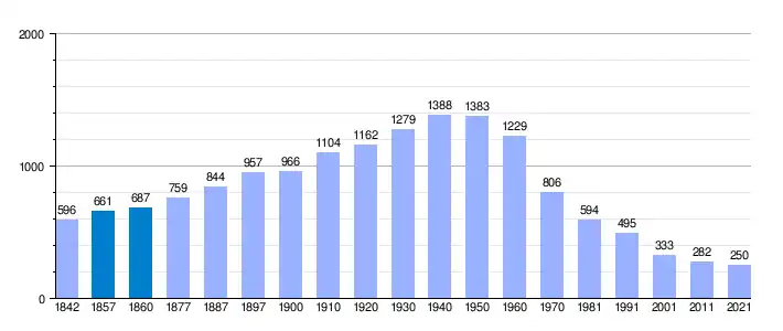 | Gráfica de evolución demográfica de Orellana de la Sierra[4] entre 1842 y 2021 |
