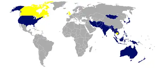 Países miembros: Australia , Estados Unidos , Fiyi , Guam , Islas Cook , Islas Marianas del Norte , Islas Marshall , Islas Pitcairn , Islas Salomón , Kiribati , Micronesia , Nauru , Niue , Nueva Zelanda , Nueva Caledonia , Palaos , Papúa Nueva Guinea , Polinesia Francesa , Samoa Americana , Samoa , Tokelau , Tonga , Tuvalu , Vanuatu y Wallis y Futuna .