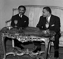 El emperador de Etiopía Haile Selassie con el presidente de Egipto Gamal Abdel Nasser en Addis Abeba para la cumbre de la Organización de la Unidad Africana, 1963.