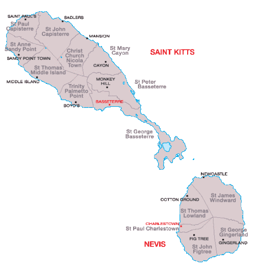 ![]() División Administrativa de la Federación de San Cristóbal y Nieves | |||||||