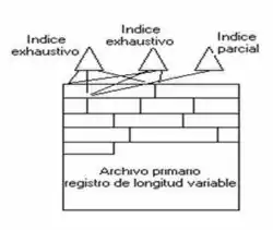 Se suelen utilizar dos tipos de índices, uno exhaustivo que contiene una entrada para cada registro del archivo principal y se organiza como un archivo secuencial para facilitar la búsqueda, el otro índice es parcial que contiene entrada a los registros donde esté el campo de interés.