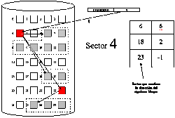 Se tiene un arreglo de bits, el número de bits que tiene, representa cada sector del disco, o sea que si los sectores 10 y 11 están ocupados su representación será: