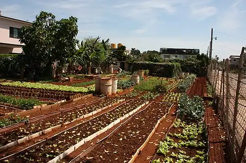 Los cultivos organopónicos o simplemente organopónicos son un sistema de cultivo ecológico urbano originario de Cuba. Suelen consistir en paredes bajas de hormigón rellenadas de materia y tierra, con surcos para riego por goteo situados sobre los productos en crecimiento. Estos organopónicos proporcionan acceso a oportunidades de trabajo, suministro de comida fresca a la comunidad, mejora del vecindario y embellecimiento de áreas urbanas.