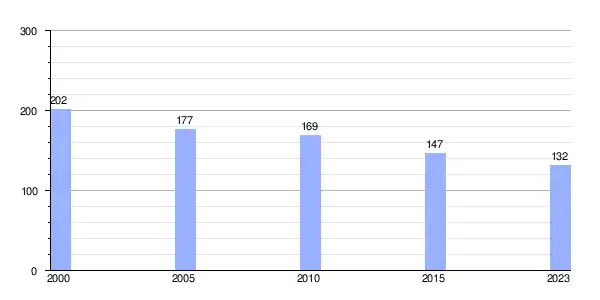 | Gráfica de evolución demográfica de Ourille (lugar) entre 2000 y 2023 |