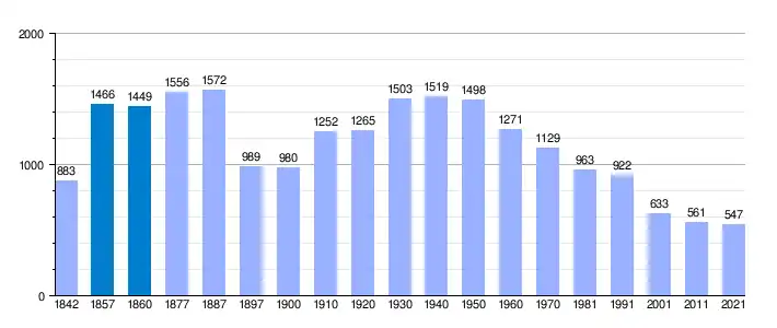 | Gráfica de evolución demográfica de Oristá[4] entre 1842 y 2021 |