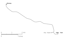 El tiempo de recorrido entre la estación de Antony y la estación de Orly 1, 2, 3 es de 7 min, mientras que entre las estaciones de Orly 1, 2, 3 y Orly 4 solo dura 1 min. Este tramo es gratuito.