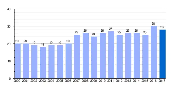 | Gráfica de evolución demográfica de Ormijana[3] entre 2000 y 2017 |