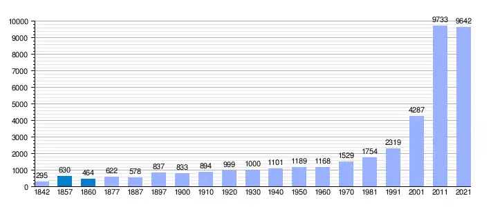 Durante los siglos XIX y XX su población experimentó un continuo crecimiento: 856 habitantes en 1900 y 2671 en 1994.