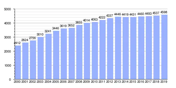 | Gráfica de evolución demográfica de Oroso entre 2000 y 2019 |