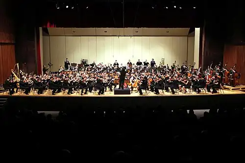 ![]() Orquesta sinfónica Simón Bolívar durante una actuación en el Teatro Castro Alves de Brasil | ||
