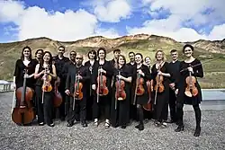 Una orquesta de cuerda u orquesta de cuerdas es una orquesta que consta únicamente de una sección de cuerda. Los instrumentos de esta orquesta suelen ser los siguientes: el violín, el cual se divide en violín primero y segundo, la viola, el violonchelo y el contrabajo. Las orquestas de cuerda pueden variar en tamaño desde una orquesta de cámara que consta de entre 12 (4.3.2.2.1 = 12) y 21 músicos (6.5.4.4.2 = 21) que a veces tocan sin director, o hasta el tamaño equivalente a la sección de cuerdas de una gran orquesta sinfónica, que podría tener 60 músicos (16.14.12.10.8 = 60; aunque Gurre-Lieder pide 84: 20.20.16.16.12).[1]