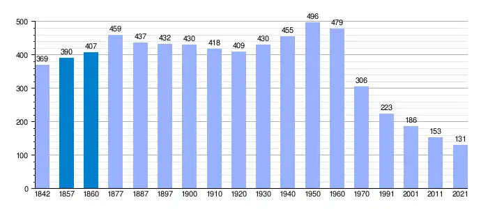 | Gráfica de evolución demográfica de Orrios[4] entre 1842 y 2021 |