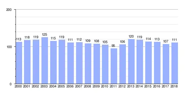 | Gráfica de evolución demográfica de Ortoñiño entre 2000 y 2018 |