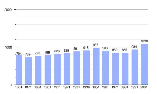 | Gráfica de evolución demográfica de Ortovero entre 1861 y 2001 |