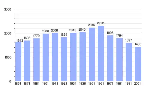 | Gráfica de evolución demográfica de Ortueri entre 1861 y 2001 |