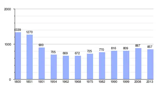| Gráfica de evolución demográfica de Orval entre 1800 y 2013 |