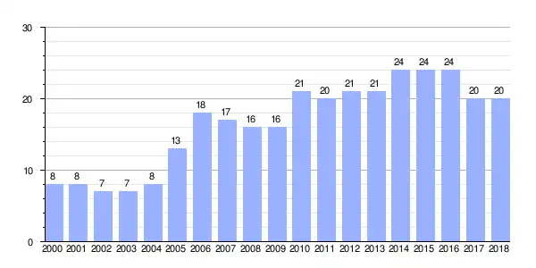 | Gráfica de evolución demográfica de Os Campós entre 2000 y 2018 |