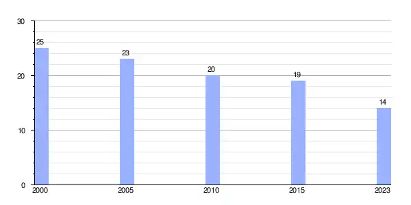 | Gráfica de evolución demográfica de Os Carballos entre 2000 y 2023 |