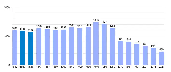 Gráfica de evolución demográfica de Osa de la Vega[4]​ entre 1842 y 2021