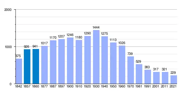 | Gráfica de evolución demográfica de Oseja de Sajambre[13] entre 1842 y 2021 |