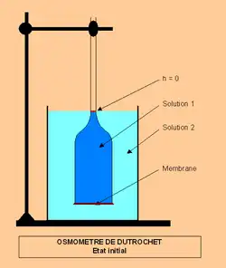 El aparato más simple es el de Dutrochet. En el momento en que se llega a un equilibrio, mediante la medición de la altura de la columna de solución concentrada es posible determinar la presión osmótica: