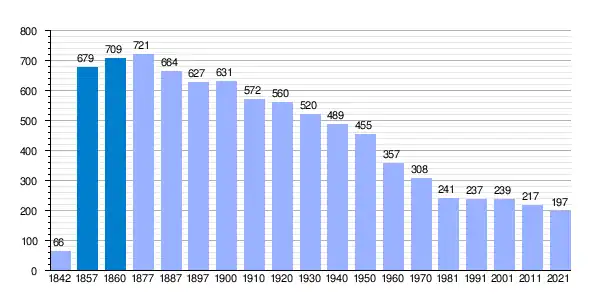 | Gráfica de evolución demográfica de Ossó[4] entre 1842 y 2021 |