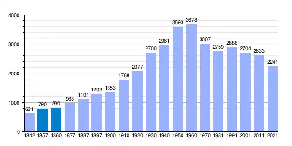 | Gráfica de evolución demográfica de Ossa de Montiel[6] entre 1842 y 2021 |