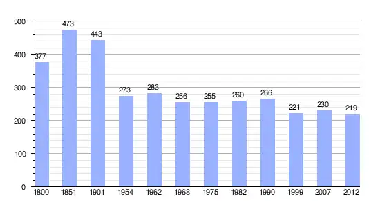 El resultado del año 1800 es la suma final de todos los datos parciales obtenidos antes de la creación de la comuna (5 de agosto de 1842).