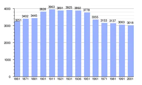 | Gráfica de evolución demográfica de Ostiano entre 1861 y 2001 |