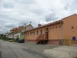 Se encuentra ubicada al sureste de la región, cerca de la orilla del río Morava —un afluente izquierdo del Danubio—, de la frontera con la región de Zlín y Eslovaquia, y a poca distancia al sureste de la ciudad de Brno.[1]