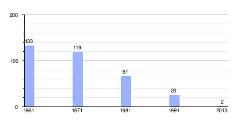 | Gráfica de evolución demográfica de Ostruška Citonja entre 1961 y 2013 |