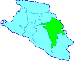 Ocupaba una parte en la sección oriental del óblast, fronterizo con la gubernia de Stávropol. Sería parte de los actuales raiones de Gulkévichi, Novokubansk, Kurganinsk, Labinsk y Uspénskoye del krai de Krasnodar, y parte de los raiones de Novoaleksándrovsk, Izobilni y Shpaka del krai de Stávropol. Tenía una superficie de 9 137 verstas cuadradas. En 1897 tenía 305 711 habitantes.[1]