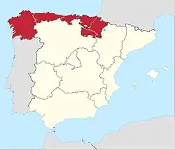 - Galicia: Archidiócesis de Santiago de Compostela, Diócesis de Lugo, Diócesis de Mondoñedo-Ferrol, Diócesis de Orense, Diócesis de Tuy-Vigo